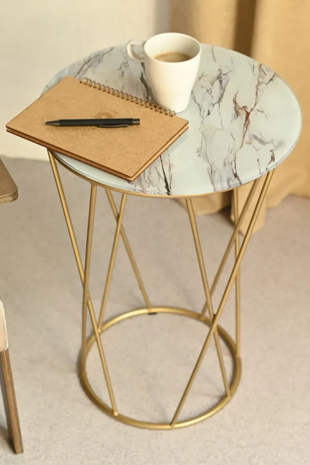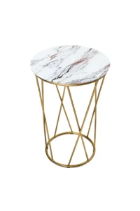 Стол журнальный Аллюр, золото / стекло белый мрамор