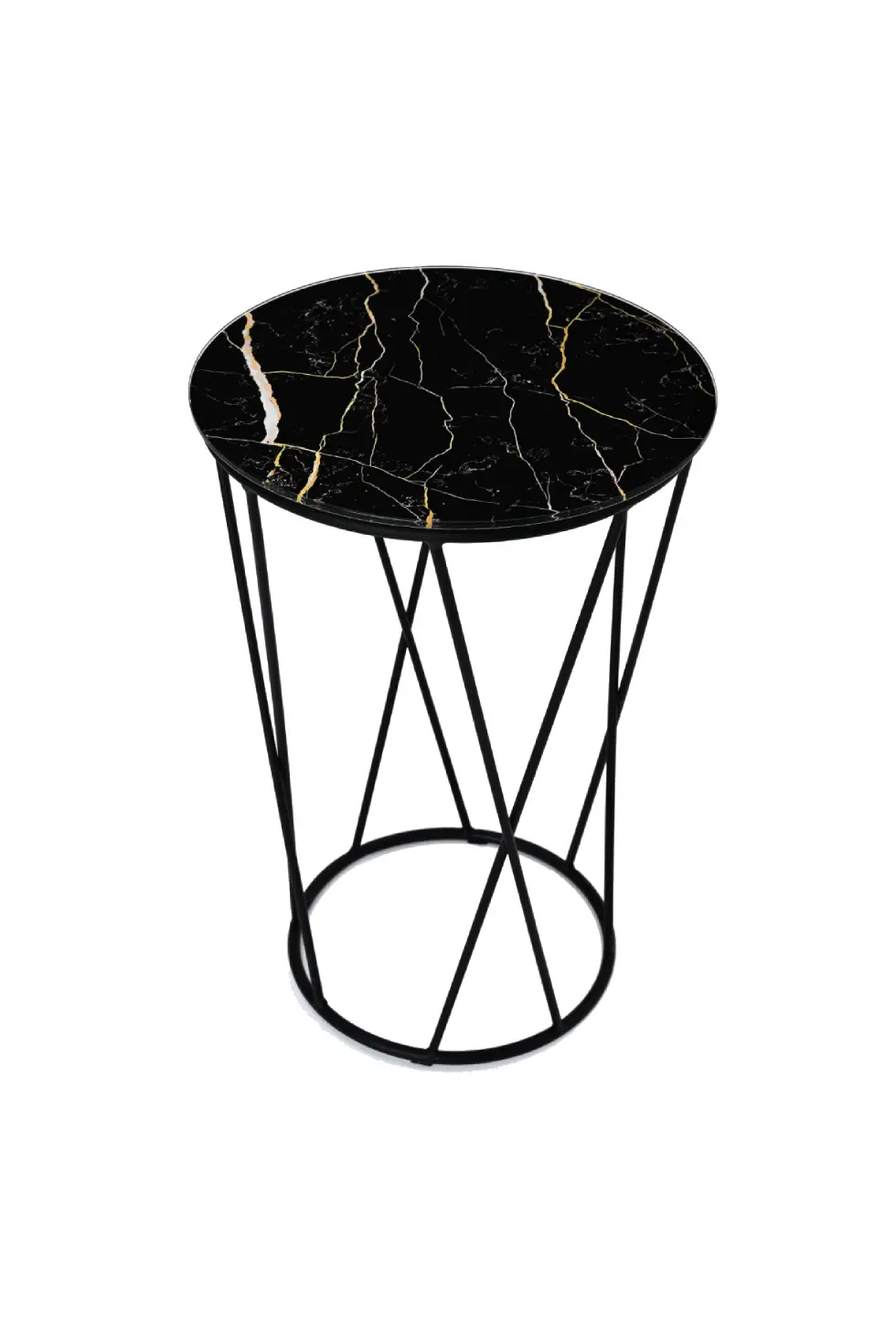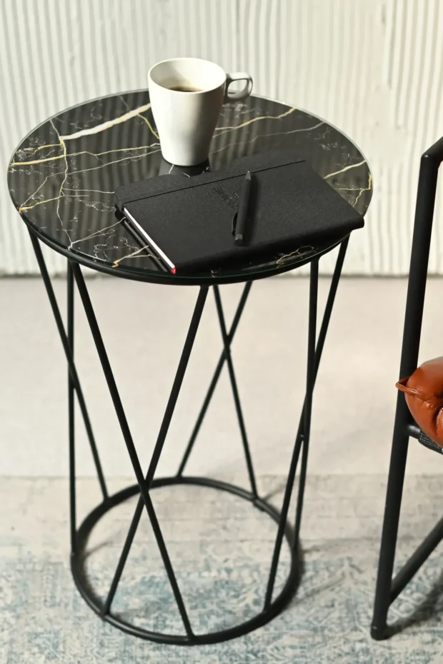 Стол журнальный Аллюр, черный / стекло черный мрамор