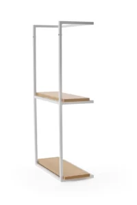Полка поставляется в собранном виде и сразу готова к использованию. Каркас выполнен из профильной трубы и покрыт полимерной краской, обеспечивающей необходимую защиту при эксплуатации. Полки изготовлены из ЛДСП.