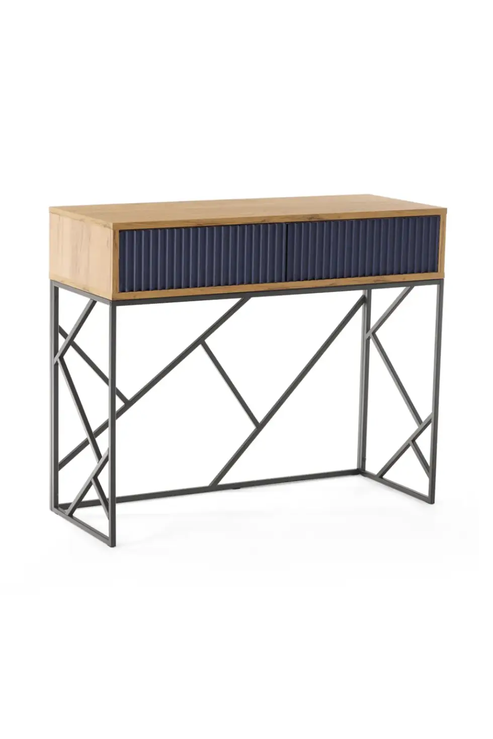 Столик Грация 2 представляет собой необычную консоль на элегантном и прочном металлическом каркасе. Корпус тумбы, выполненный из ЛДСП крафтовых древесных тонов, и фрезерованный фасад в форме волны, придают изделию легкость. Данная модель оборудована двумя выдвижными ящиками для хранения, которые легко открываются благодаря использованию направляющих скрытого монтажа push- to- open (нажал-открыл).
