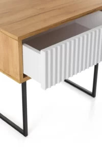 Прикроватный журнальный столик «Грация 6» в скандинавском стиле будет ярким украшением спальни. Столик оснащен выдвижным ящиком с фрезерованным фасадом из МДФ с покрытием ПВХ пленкой в виде волны, который придает изделию неповторимый шарм. Крышка, дно и боковины из ЛДСП 18 мм, цвет дуб сантана. Отличительной особенностью данной полки является использование направляющих скрытого монтажа push- to- open (нажал-открыл).