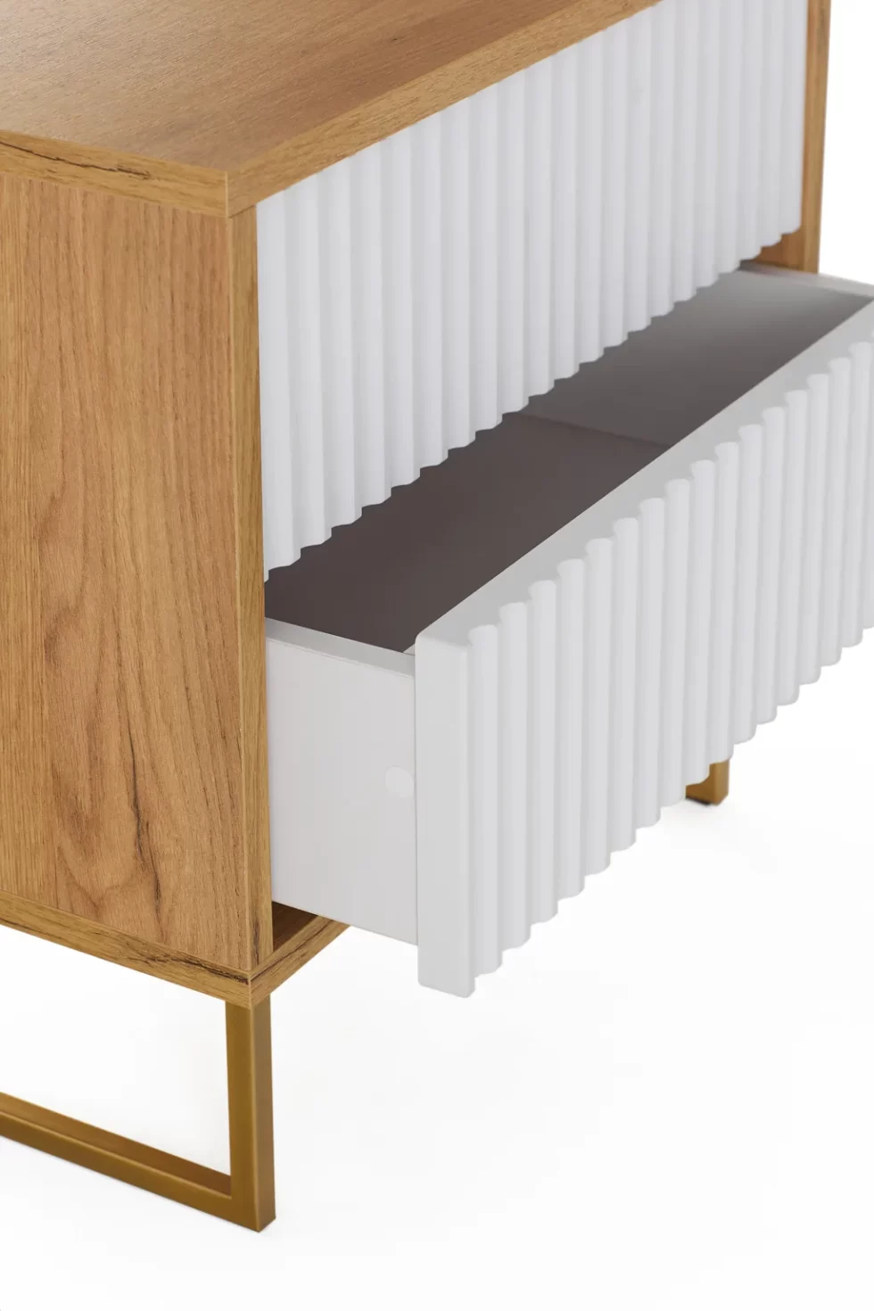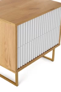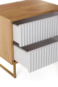 Прикроватный журнальный столик «Грация 8» в скандинавском стиле будет ярким украшением спальни. Столик оснащен двумя выдвижным ящиками с фрезерованным фасадом из МДФ с покрытием ПВХ пленкой в виде волны, который придает изделию неповторимый шарм. Крышка, дно и боковины из ЛДСП 18 мм, цвет дуб сантана. Отличительной особенностью данной полки является использование направляющих скрытого монтажа push- to- open (нажал-открыл).