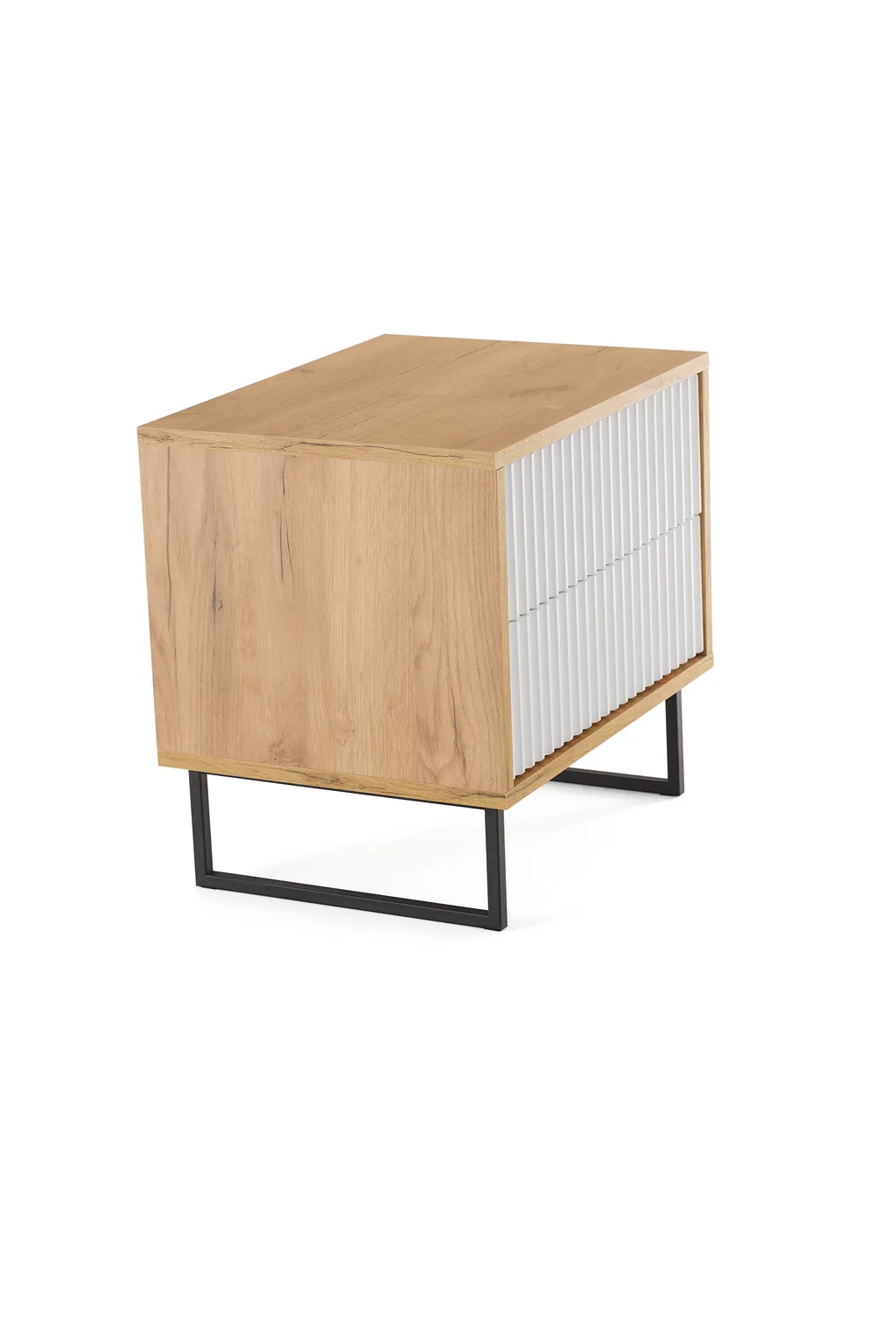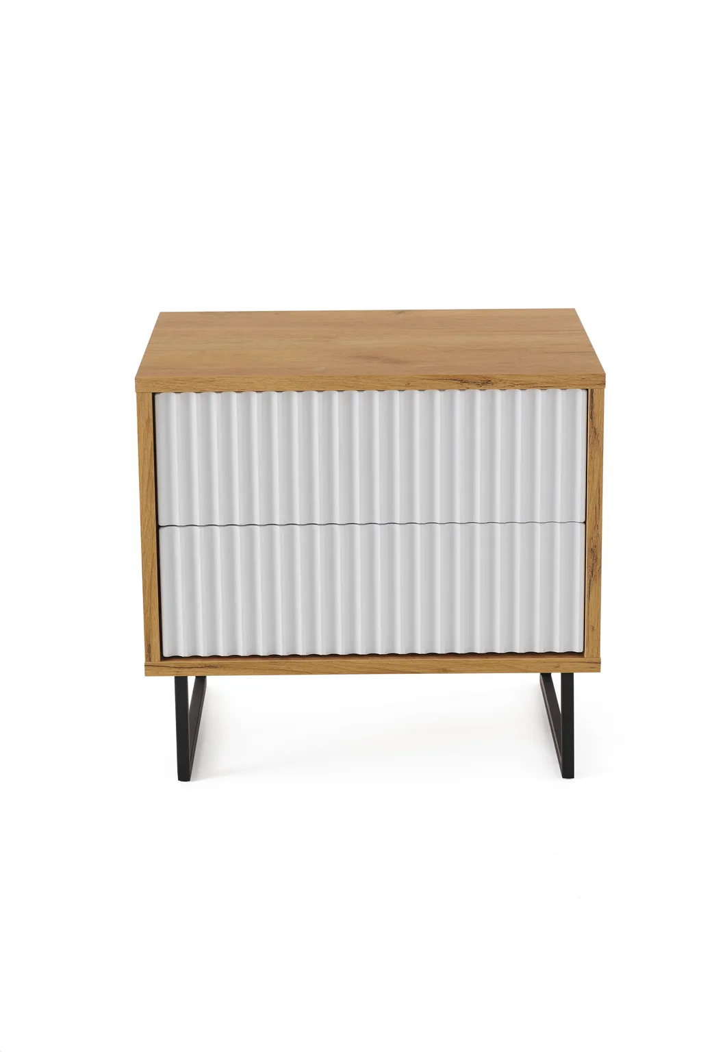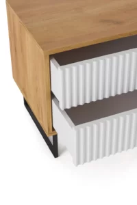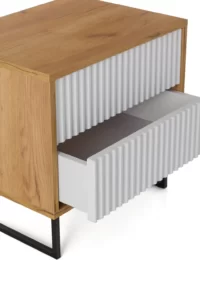 Прикроватный журнальный столик «Грация 8» в скандинавском стиле будет ярким украшением спальни. Столик оснащен двумя выдвижным ящиками с фрезерованным фасадом из МДФ с покрытием ПВХ пленкой в виде волны, который придает изделию неповторимый шарм. Крышка, дно и боковины из ЛДСП 18 мм, цвет дуб сантана. Отличительной особенностью данной полки является использование направляющих скрытого монтажа push- to- open (нажал-открыл).