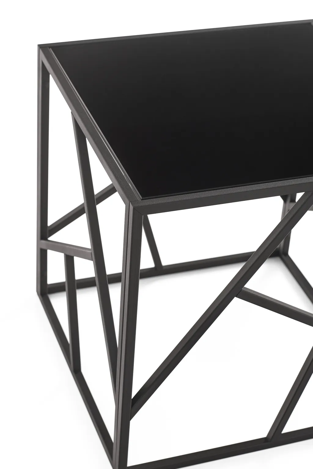 Столешница столика выполнена из травмобезопасного закаленного стекла толщиной 6мм. Металлический каркас основания изготовлен из стальной трубы прямоугольного сечения 15х15мм и толщиной 1,5 мм, окрашен полимерной краской.