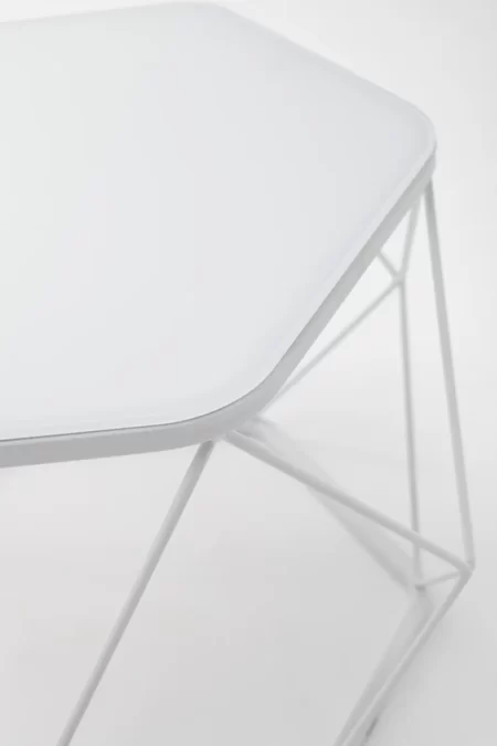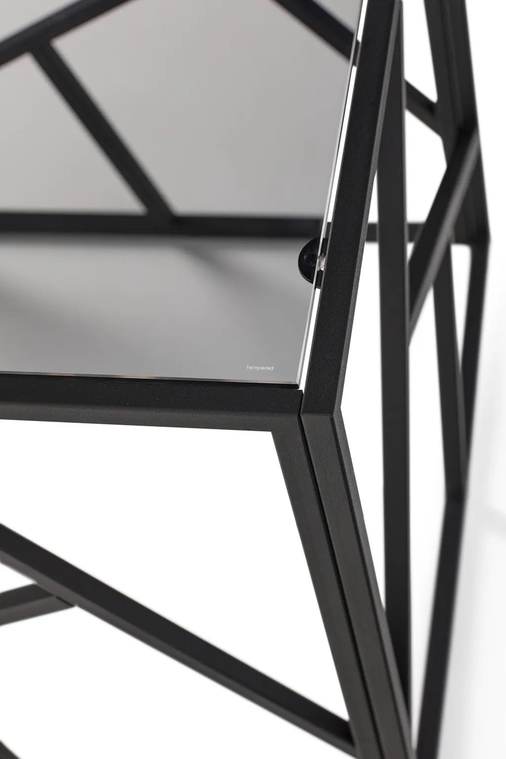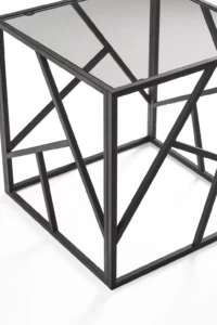 Столешница столика выполнена из травмобезопасного закаленного стекла толщиной 6мм. Металлический каркас основания изготовлен из стальной трубы прямоугольного сечения 15х15мм и толщиной 1,5 мм, окрашен полимерной краской.